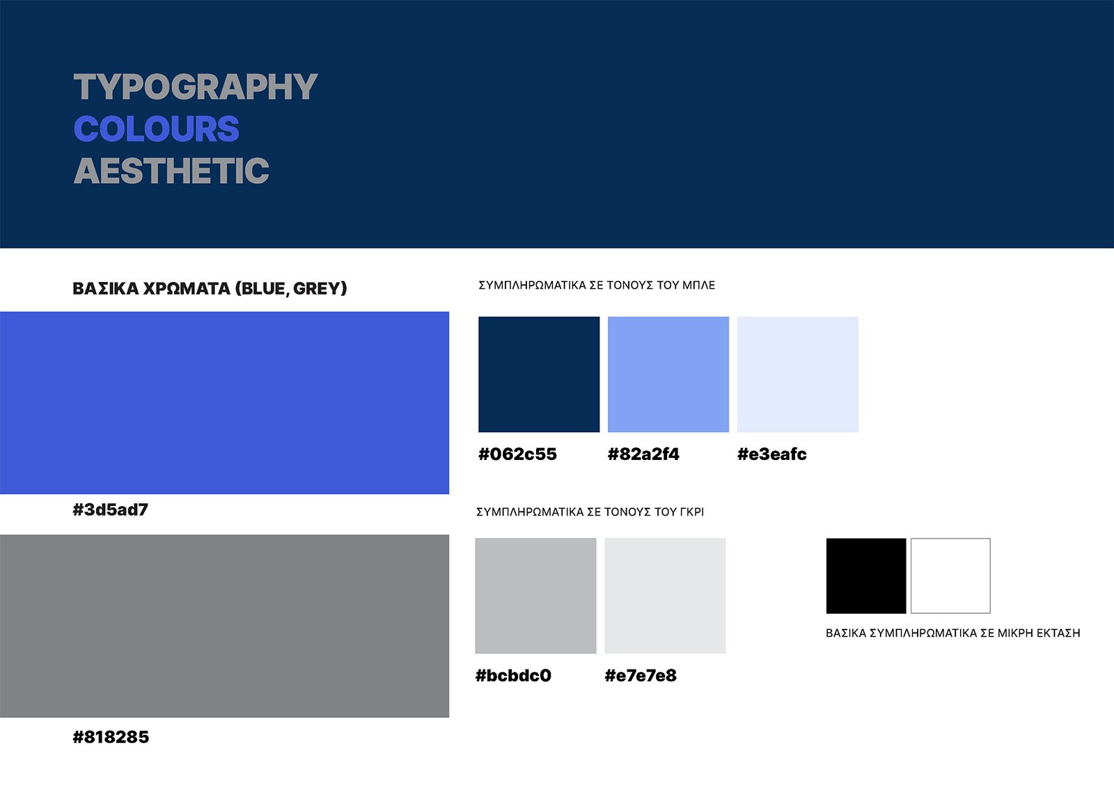Χρωματική παλέτα, τυπογραφία, αναλογίες, κανόνες σύνθεσης. Η ταυτότητα λειτουργεί ως σύστημα και όχι ως μεμονωμένο στοιχείο.