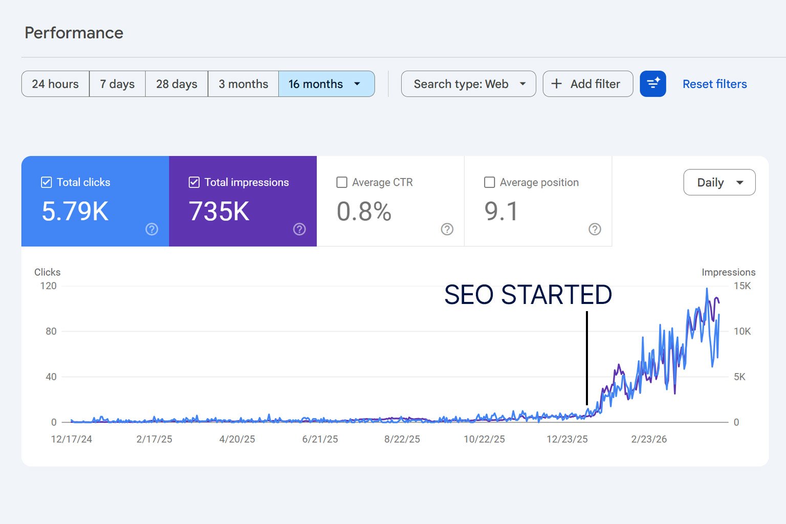 Στόχος μας είναι η συνολική οργανική ενίσχυση της επιχείρησης. Σε ορισμένες περιπτώσεις μπορούμε να επιτύχουμε κορυφαίες θέσεις, όμως η πραγματική αξία βρίσκεται στην αύξηση ποιοτικής επισκεψιμότητας και στη στρατηγική κάλυψη θεματικών ενοτήτων που δημιουργούν μακροχρόνια παρουσία.